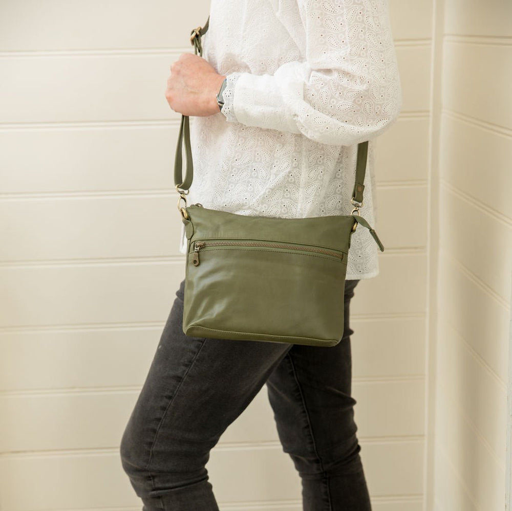 Mini Rome is a chic little bag with a zip closure at the top, front feature zip pocket as well as a long detachable strap. Inside is a large zip pocket and chambray lining.
